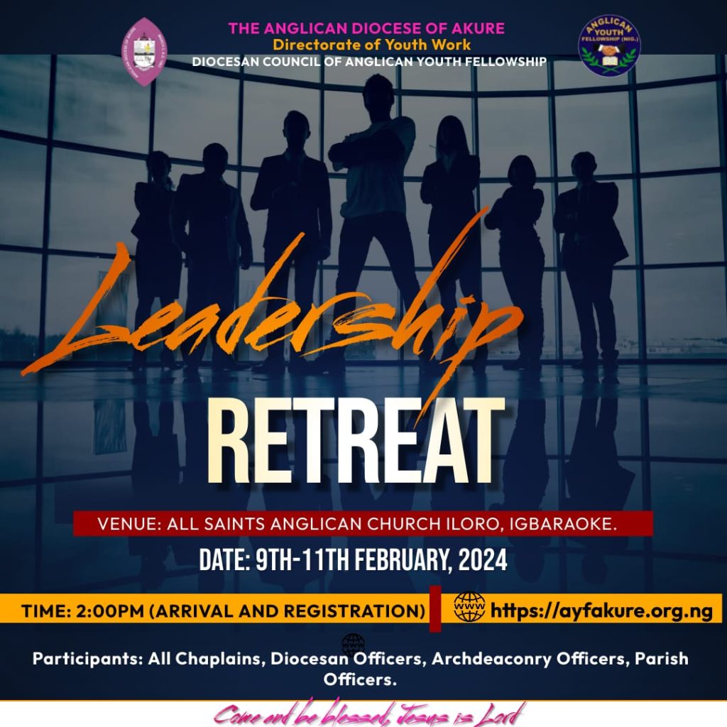 This Year’s Leadership Retreat will run from 9th February to 11th February 2024 at All Saints Anglican Church, Iloro, Igbara Oke.